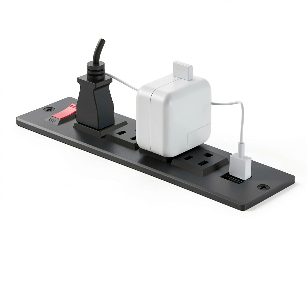 - Built-in power outlet with 4 AC sockets and 2 USB ports for charging devices