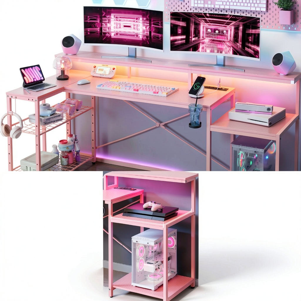 This desk is perfect for gaming setups, home offices, or study areas where multiple devices and organized storage are essential. It suits gamers who need immersive lighting and convenient power access for consoles, VR equipment, and computers. Remote workers will appreciate the spacious design for productivity, while students can use it for efficient study sessions. The adjustable metal grid, foldable cup holder, and headphone hook allow customization to fit individual preferences and space constraints.